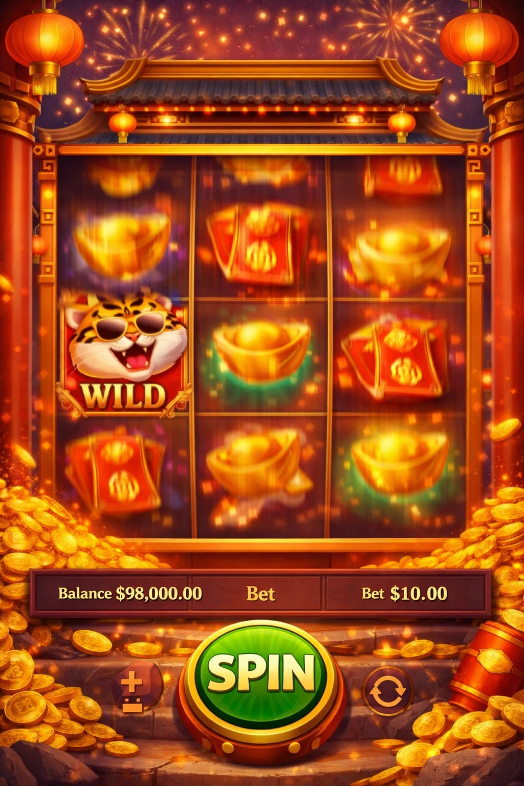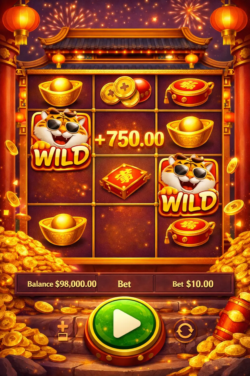 O tigre ocupa naturalmente a posição central nesta hierarquia. Ele não é apenas o símbolo de maior valor ou o rosto da marca visual do jogo. É também o elemento que concentra a ideia de força e prosperidade que estrutura toda a identidade do título. A sua presença ajuda a estabelecer um ponto de referência estável dentro do tabuleiro. Quando aparece, o jogador percebe que está diante de um símbolo importante não apenas por hábito mecânico, mas pela própria lógica visual do jogo. Isto revela um bom trabalho de design: o símbolo principal comunica valor antes mesmo de o jogador confirmar esse valor na tabela de pagamento.